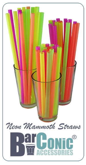 Big, bigger and biggest! We offer these BarConic® MAMMOTH straws in three sizes (8.5', 10.5' AND 12') in a variety of fun assorted neon colors that glow under black lights. Each are 1/2 inch in diameter! Your customers will love these. They come 200 straws to a pack.